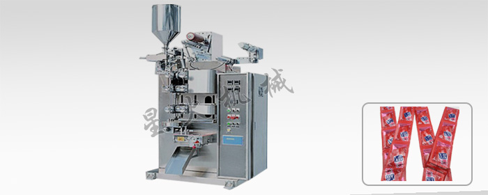 【產(chǎn)品介紹】: 這款設(shè)備主要是針對液體,粘體等物料,實(shí)現(xiàn)自動(dòng)包裝而設(shè)計(jì)的三對輥筒的包裝機(jī)械,該機(jī)可以實(shí)現(xiàn)三邊封和四邊封。該機(jī)有一組縱封熱輥筒,一組橫封熱輥筒,封口采用輥筒方式,縱向封口花紋采用棋盤紋配合防漏線,橫向封口花紋采用棋盤紋配合防漏線或平封配合防漏線,被包裝的物料通過計(jì)量和下料嘴落入包裝袋中,計(jì)量裝置可有多種方式選擇,如用于液體包裝的磁力泵,用于粘體包裝的活塞泵和海霸泵,用于粘體包裝且必須連續(xù)填充的羅塔里泵。切斷刀可以采用平刀,鋸齒刀,點(diǎn)劃刀三種方式之一。該機(jī)還裝備有方便開袋的易撕切口裝置,整機(jī)的電器控制采用進(jìn)口的變頻器進(jìn)行調(diào)節(jié),該機(jī)不需要更換任何零件,可以實(shí)現(xiàn)包裝袋的長度的無極變化,適合單機(jī)多品種的生產(chǎn)。